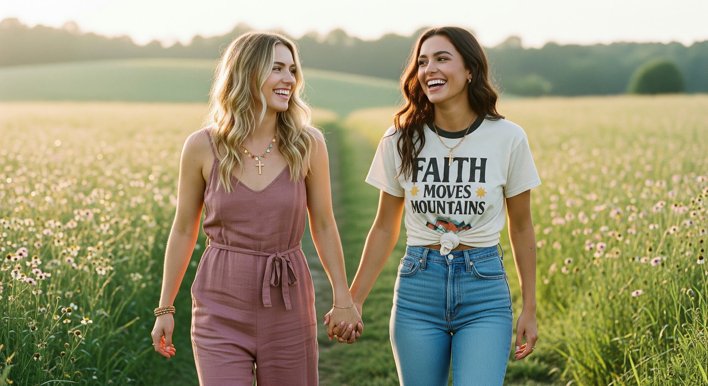 Grace-forward. Gospel-rooted. Our faith-based clothing for women blends modern silhouettes with eternal messages. Whether you love layered looks, statement verses, or subtle symbols, our styles help you wear your light with beauty and boldness.