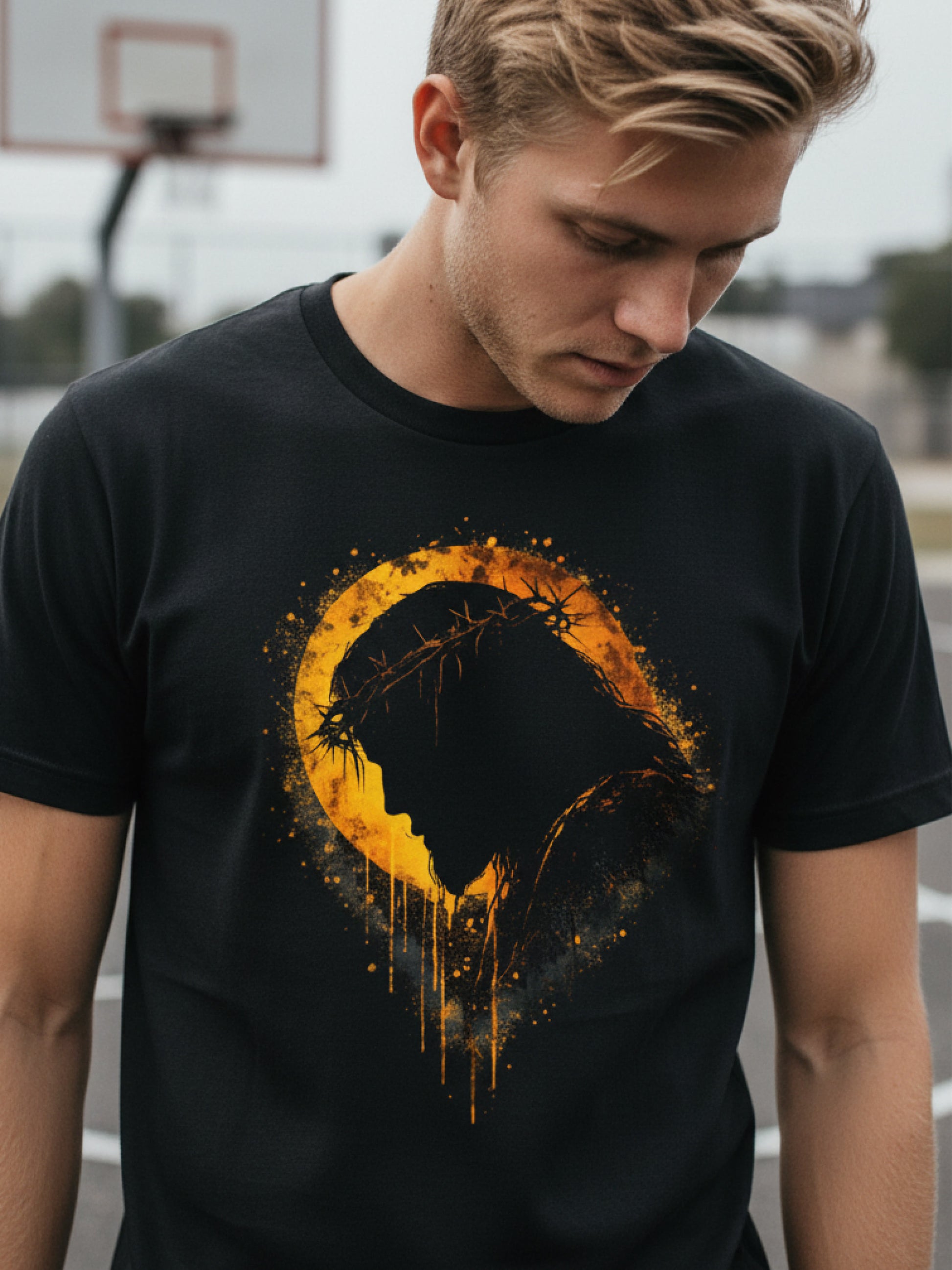 This jesus tee shirt transforms one of the most powerful symbols of faith into a bold, modern statement. The glowing crown of thorns design burns with intensity—representing sacrifice, redemption, and unwavering belief. It’s not subtle, and it’s not meant to be. Crafted on a premium heavyweight cotton base with a relaxed oversized fit, this piece blends streetwear edge with spiritual depth. Whether you wear it daily or as a statement piece, it carries meaning beyond style. This isn’t just a graphic tee—it’s a reminder of what was endured, and what it still means today.